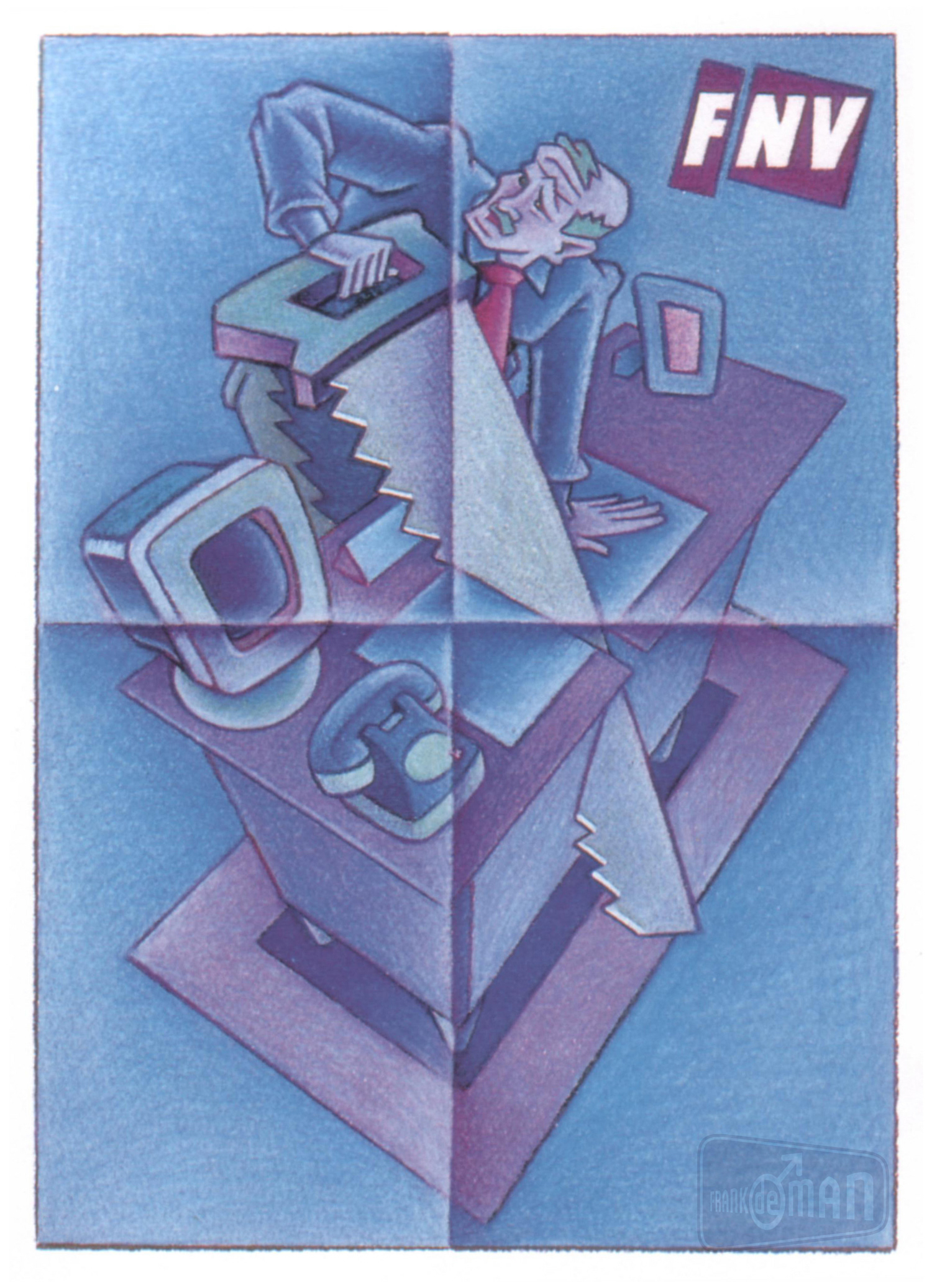 Lange tijd mogen werken voor FNV voedingsbond & FNV vervoersbond. Deze illustratie gemaakt bij presentatie “blauwdruk voor arbeidstijdverkorting”