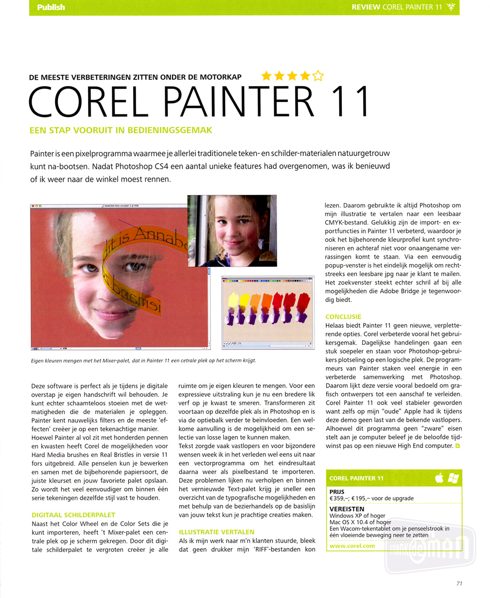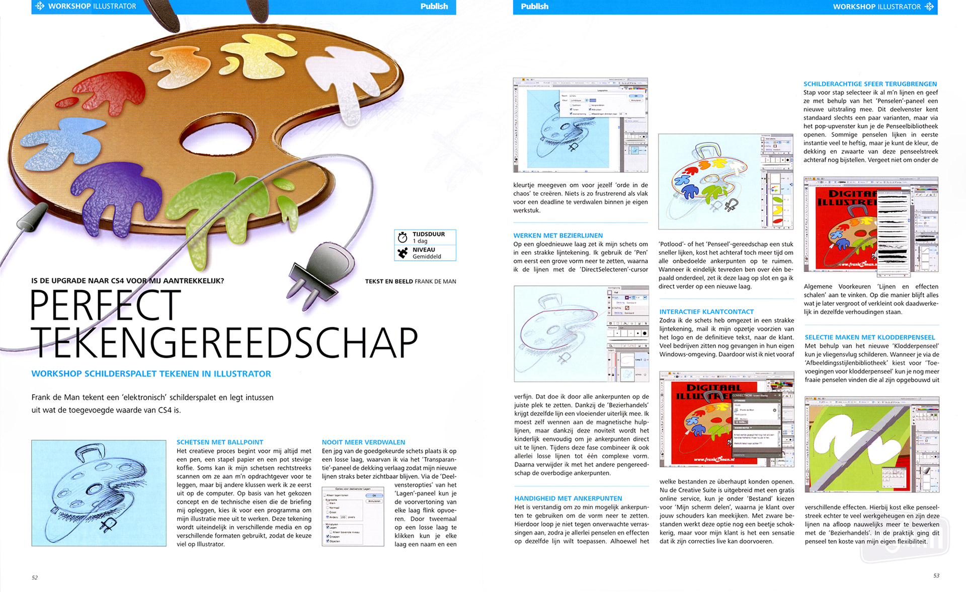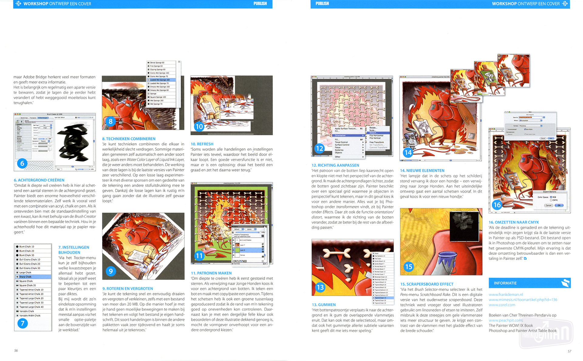 Naast een coverillustratie met een uitgebreid artikel mocht ik voor hetzelfde vaktijdschrift ook nog enkele artikelen & reviews schrijven over diverse grafische tekenprogramma's.