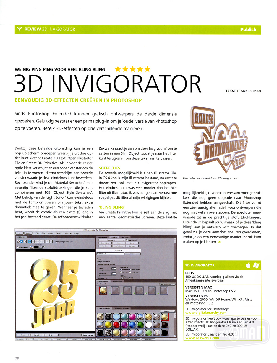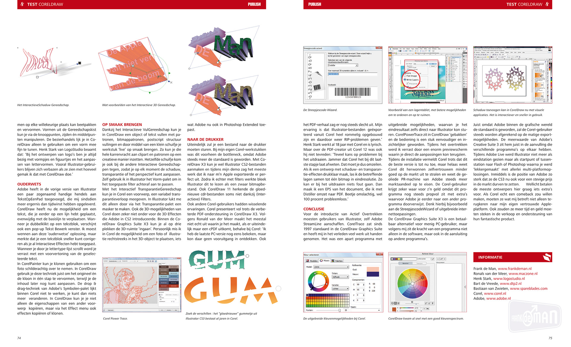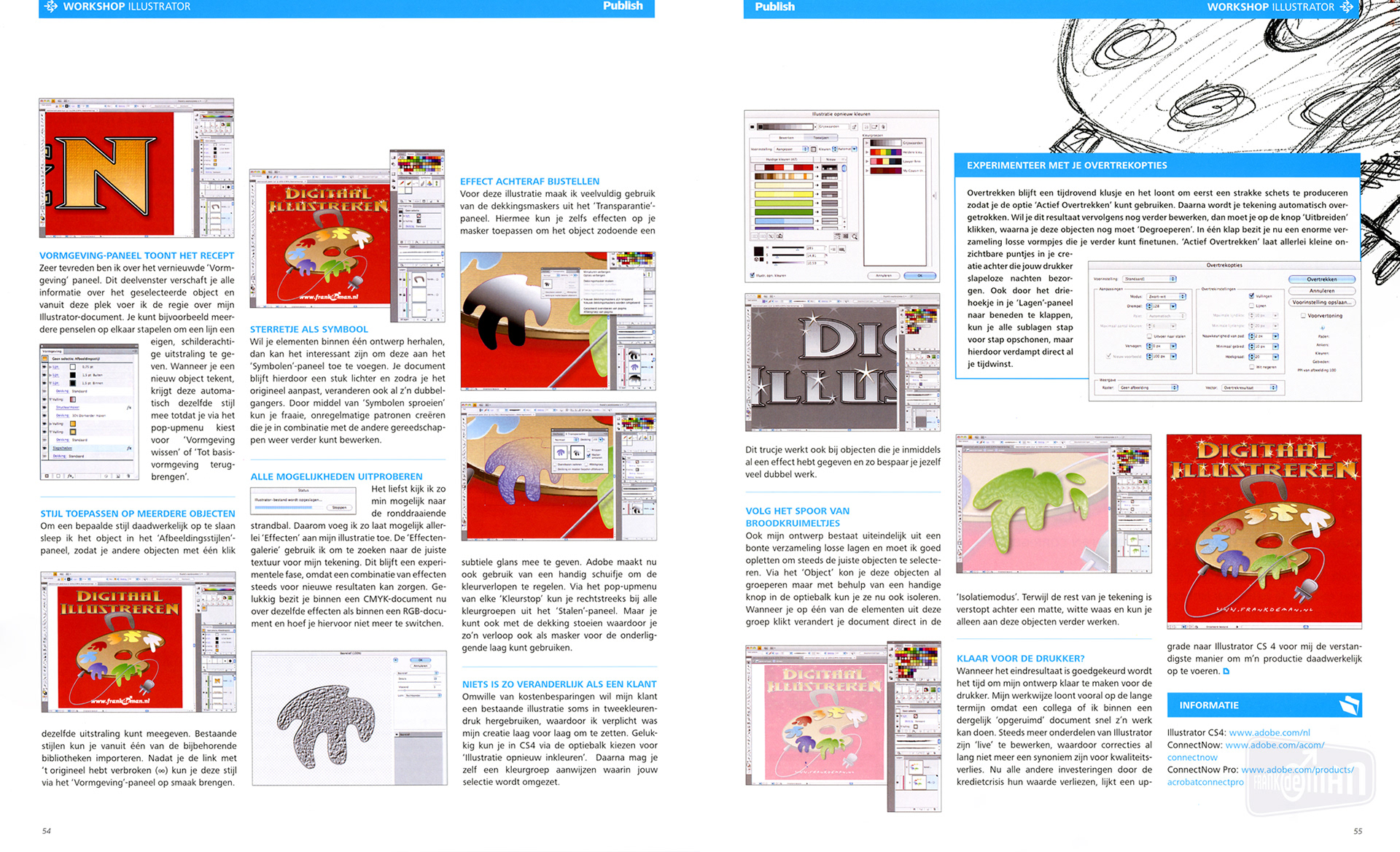 Naast een coverillustratie met een uitgebreid artikel mocht ik voor hetzelfde vaktijdschrift ook nog enkele artikelen & reviews schrijven over diverse grafische tekenprogramma's.