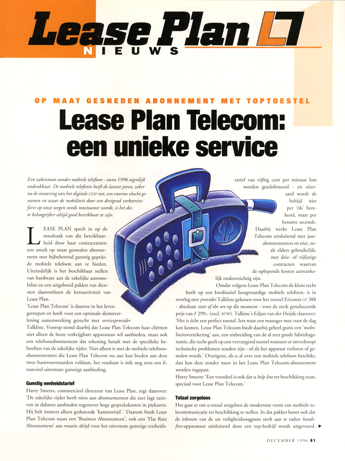 Deze glossy werd ieder kwartaal verspreid onder alle klanten van Lease Plan Nederland. Naast mooie interviews en prachtige artikelen mocht ik achterin dit luxe tijdschrift het zakelijke nieuws een vrolijke toon mee geven.