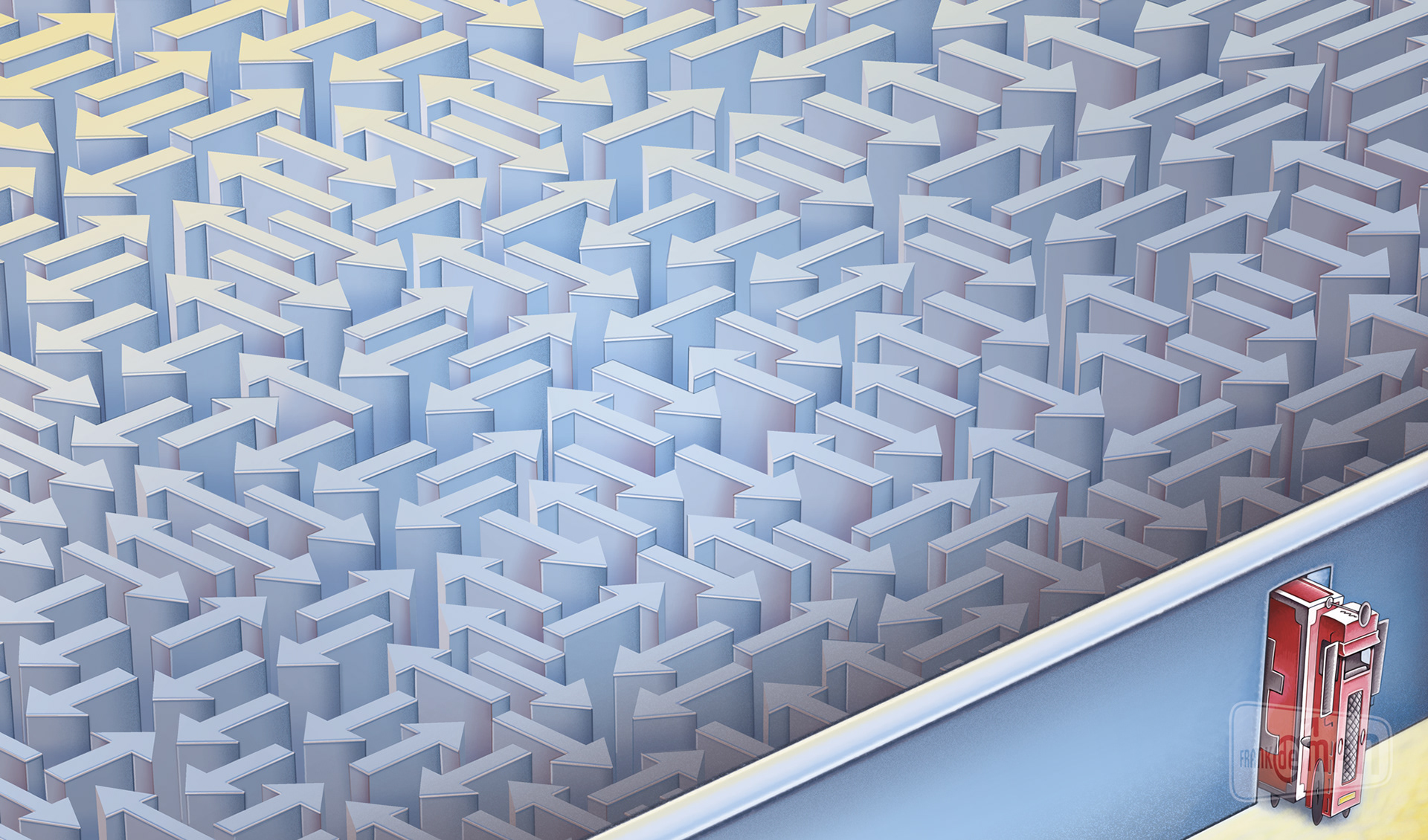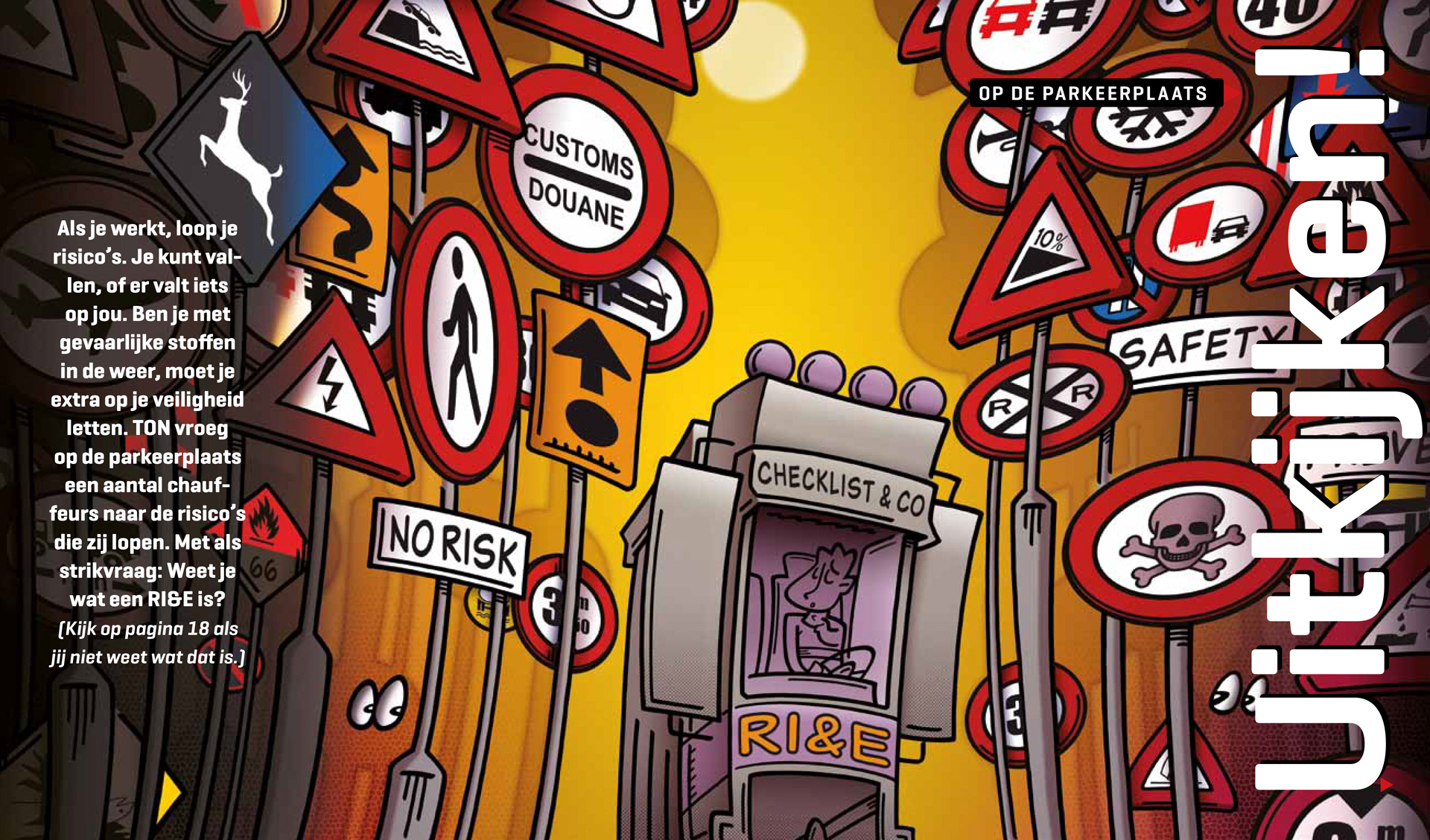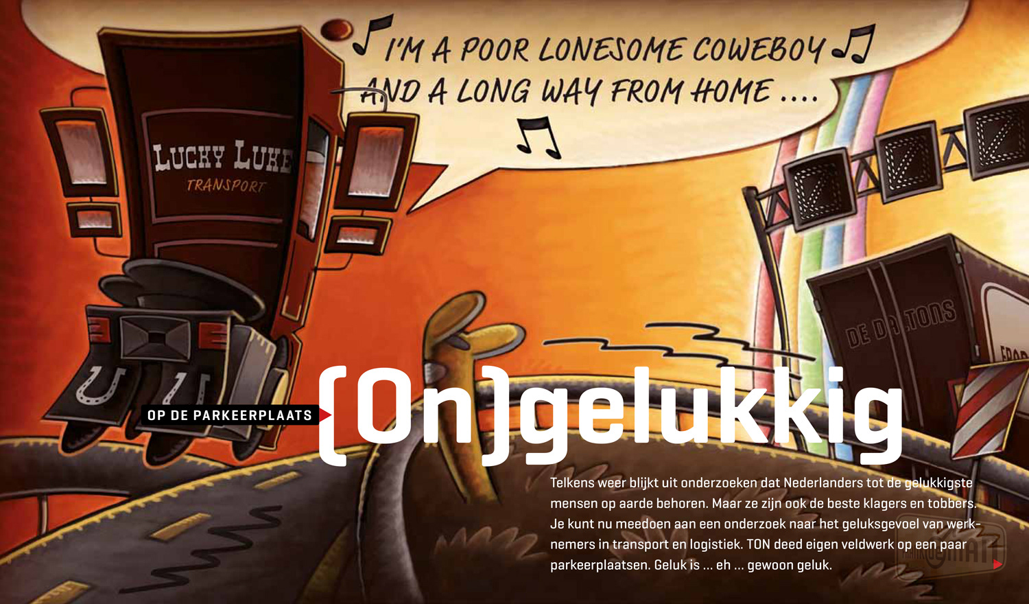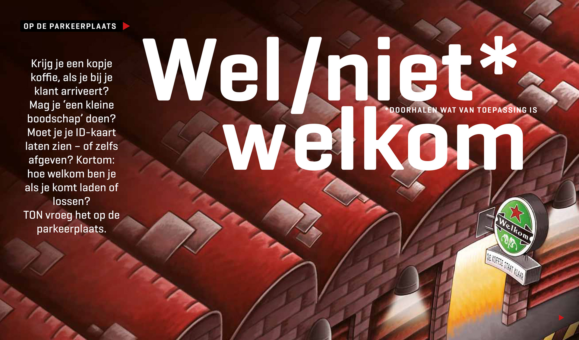 Al 10 jaar mag ik mijn tekentalent inzetten voor TON magazine. Het grootste magazine voor mensen die werken in transport & logistiek. Het wordt toegestuurd aan iedereen die binnen de CAO voor het wegvervoer valt. Dit betekent dat de redactie rekening moet houden met een brede doelgroep waar zowel de werknemers als de werkgevers binnen vallen. Binnen deze serie moest één grote aansprekende spread het onderwerp op een prikkelende wijze visualiseren om zo de lezer het verhaal in te trekken.